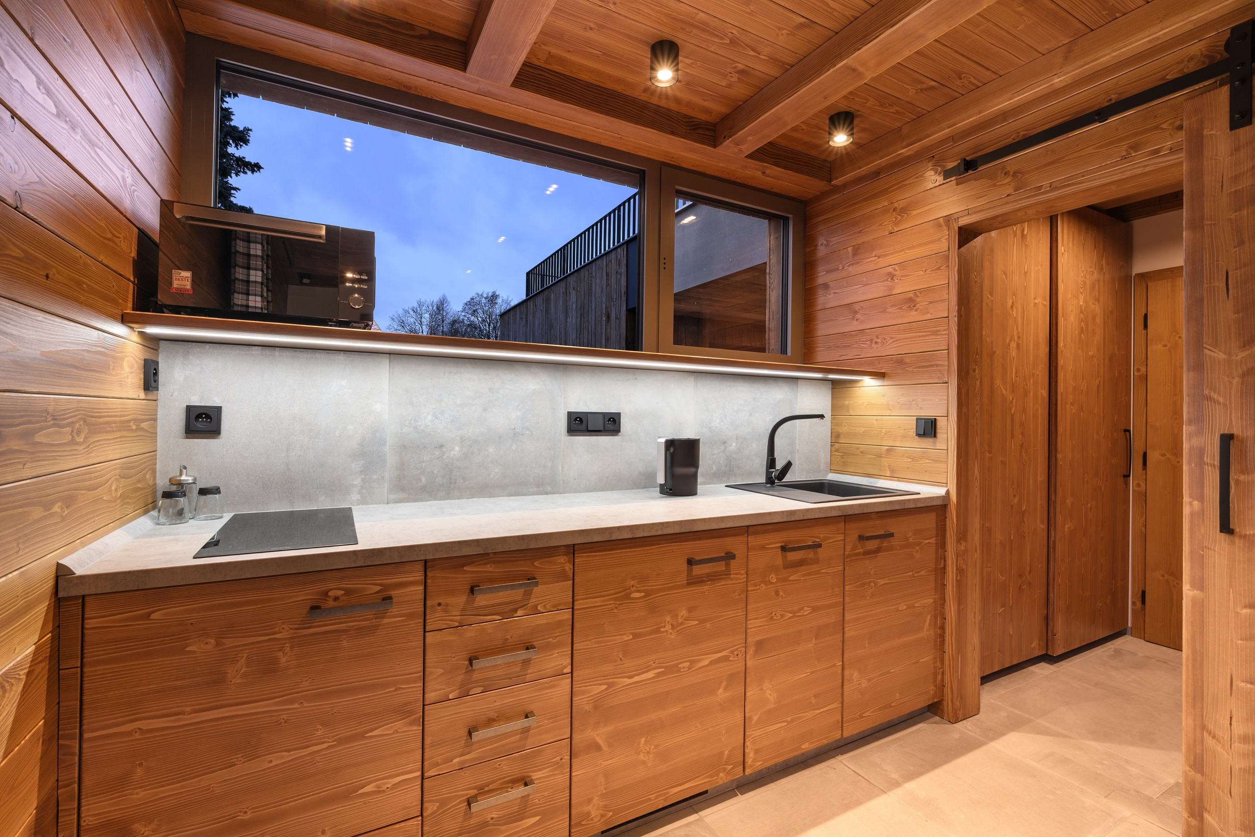 Auch die Umgebung macht dieses Haus besonders. Im Winter befinden Sie sich mitten in einem Paradies für Skifahrer und Snowboarder: Die Pisten des größten Skigebiets Tschechiens, SkiResort Černá hora – Pec, sind nur einen Steinwurf entfernt. Hier können Sie Ski fahren, Langlauf, Rodeln oder Schneeschuhwandern. Alles bequem erreichbar. Die lebhafte Winterstimmung im Tal sorgt für zusätzliche Gemütlichkeit.