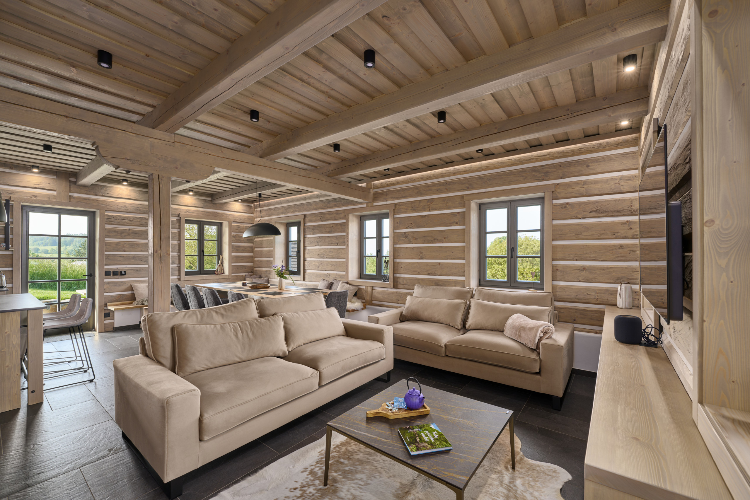 Die Unterkunft verfügt über einen Garten, Gartenmöbel, eine Terrasse, einen Grillplatz, einen Kamin, ein Internetanschluss (WLAN), ein Föhn, ein Kinderbereich, eine Sauna, eine Wärmepumpe, eine überdachter Parkplatz (3 Stellplätze) auf dem Grundstück, ein Fernsehgerät.