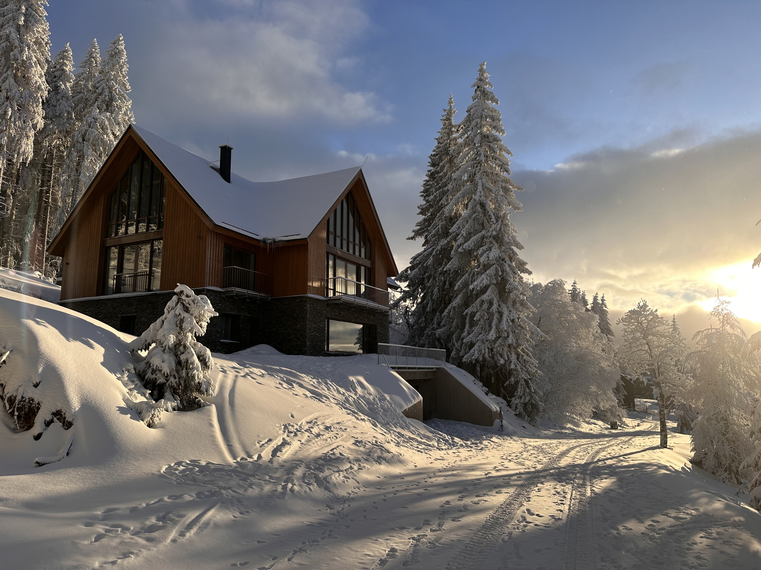 Die Umgebung bietet das ganze Jahr über zahlreiche Möglichkeiten. Im Winter genießen Sie das weitläufige Skigebiet von Špindlerův Mlýn mit breiten Pisten und modernen Liften. In den wärmeren Monaten ist die Region ein Paradies für Wanderer und Mountainbiker. Entdecken Sie besondere Orte wie die Elbquelle, den Pančavský-Wasserfall oder unternehmen Sie eine Tour zum Zlaté návrší. In den nahegelegenen Orten finden Sie gemütliche Restaurants, Cafés und Einkaufsmöglichkeiten, während Sie gleichzeitig die Ruhe der Berge genießen.