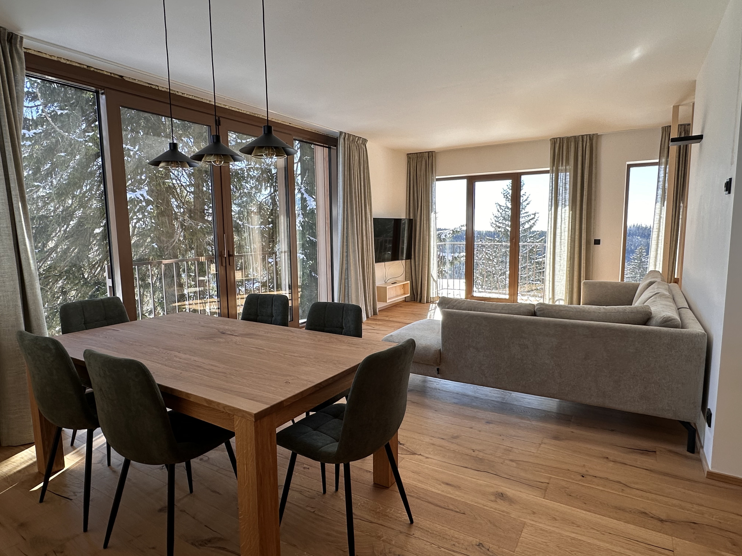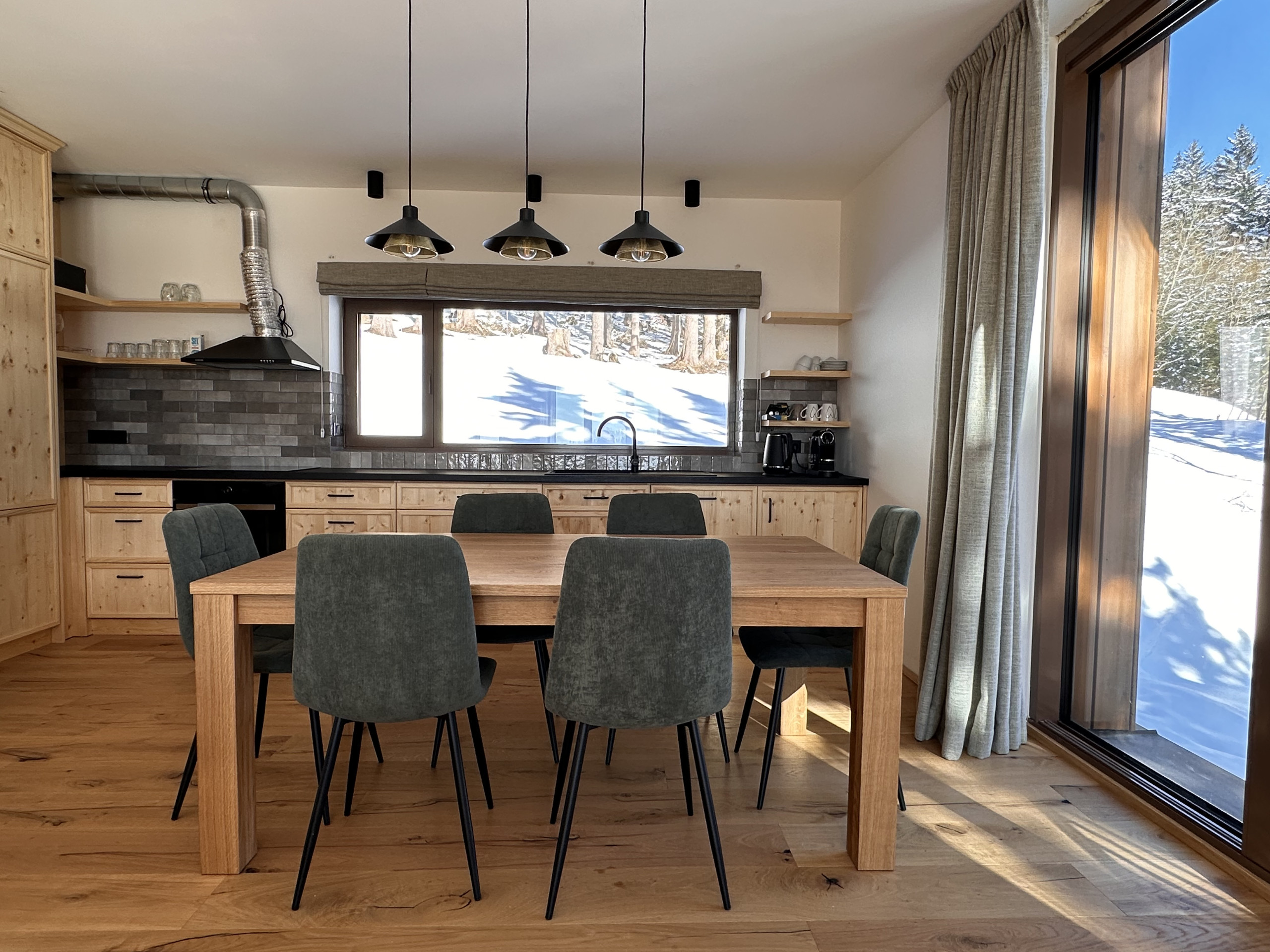 Das Chalet wird ausschließlich als Ganzes vermietet und eignet sich ideal für Gruppen bis zu 15 Personen. Das Haus besteht aus drei großzügigen Apartments, sodass Sie gemeinsam reisen und dennoch ausreichend Privatsphäre und Komfort genießen. Perfekt für Familien oder Freundesgruppen, die Zeit miteinander verbringen und gleichzeitig ihren eigenen Rückzugsort schätzen.